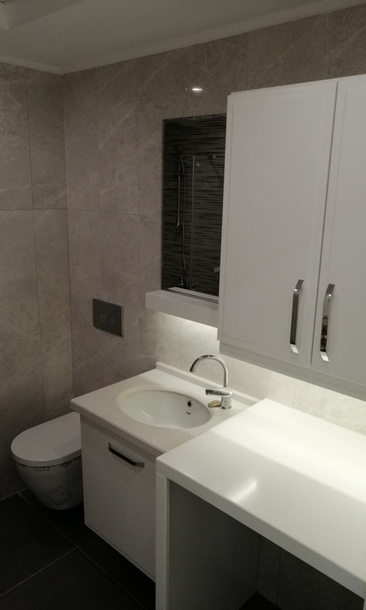 - Islak zemin tavan kadar seramik